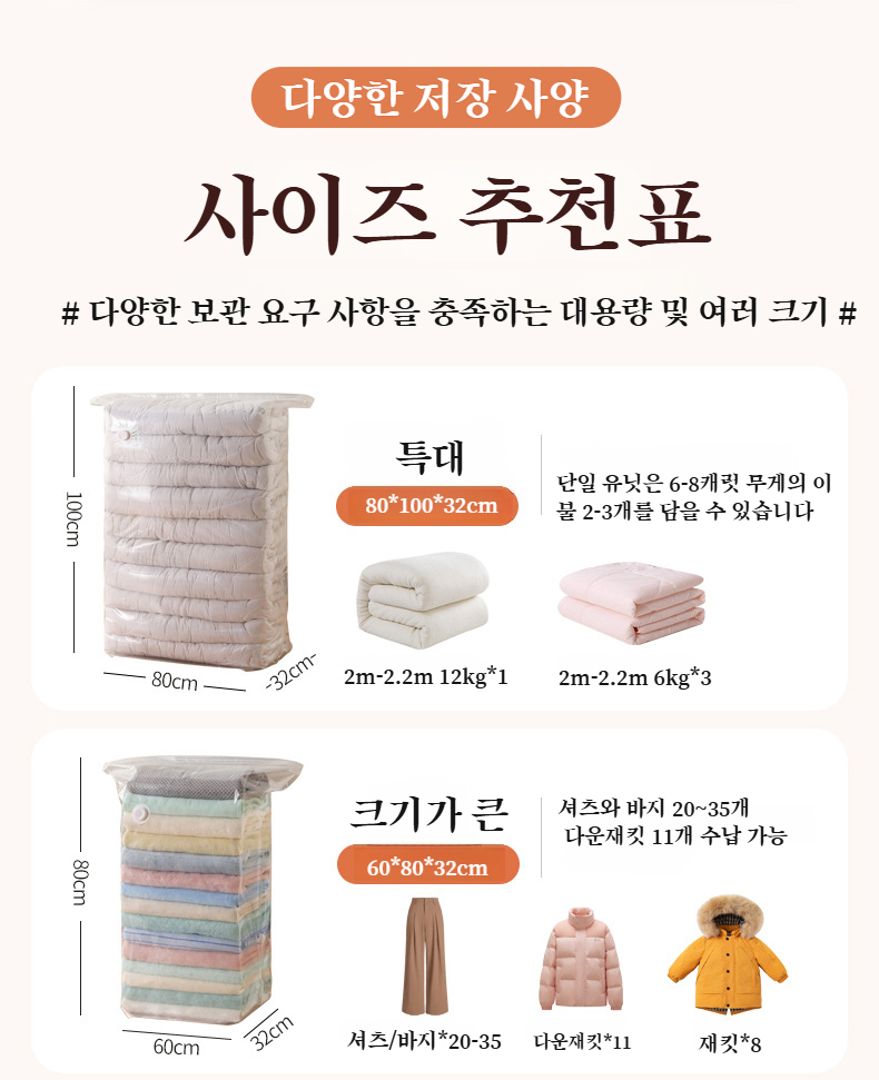두꺼운 겨울 이불을 깔끔하게 보관하는 압축백