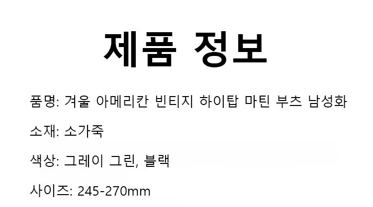 겨울 아메리칸 빈티지 하이탑 마틴 부츠 남성화